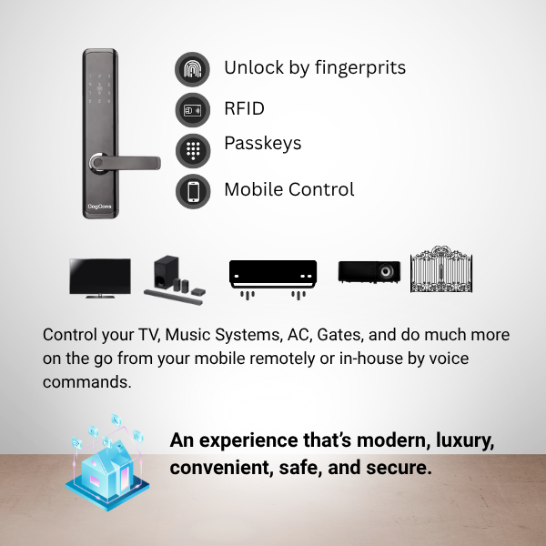 Control your lights, music, switches, curtains, and security effortlessly — with one touch or completely hands-free.
